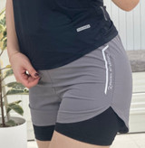نوع محصول: شورتک ورزشی زنانه • مدل: دو لایه (داخل جذب + رویه آزاد) • جنس: پارچه کشی استرچ، سبک و تنفسپذیر • سایزبندی: مدیوم تا دو ایکس (M-XXL) • رنگبندی: سورمهای / مشکی / طوسی • مناسب: باشگاه، بدنسازی، دویدن، کراسفیت، پیادهروی: سایزبندی
